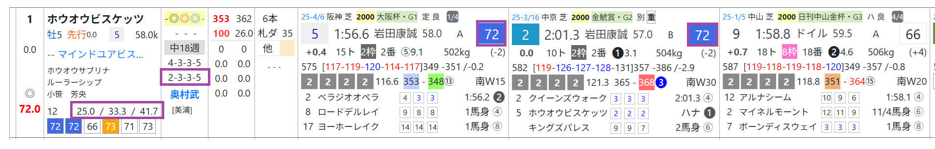 ホウオウビスケッツはオープン&重賞で2勝&2着3回、2走前&前走が「ハイブリッド指数」=《70》超え、奥村武厩舎は札幌の芝の勝率25%&複勝率41%と優秀。