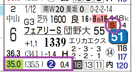 ⑧レモンパームはフェアリーSで上がり2位をマーク。