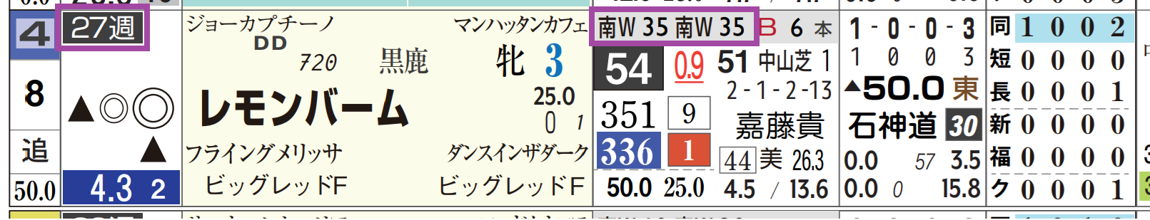 「ローテーション」=中27週、当週&1週前の「追切指数」=《35》《35》