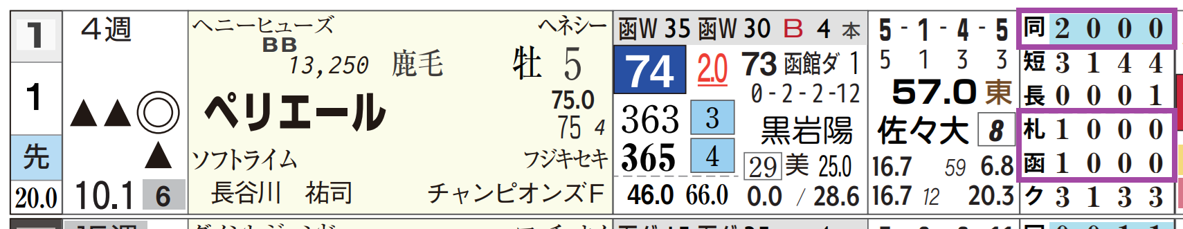 2025年08月09日 【レース予想】札幌11R・エルムS(G3) 【札幌11R・エルムS(G3)】①ペリエールは大沼Sを好時計勝ち。「レースレベル」=《S》、「ハイブリッド指数」=《73》1700mがベスト。「距離実績」=【2・0・0・0】ヘニーヒューズ産駒は札幌のダートの中~長距離の成績が優秀。「血統評価」=成績B&回収率B⇒「インスタグラム」「ツイッター」にて他情報も更新中 「レース予想」カテゴリの最新記事