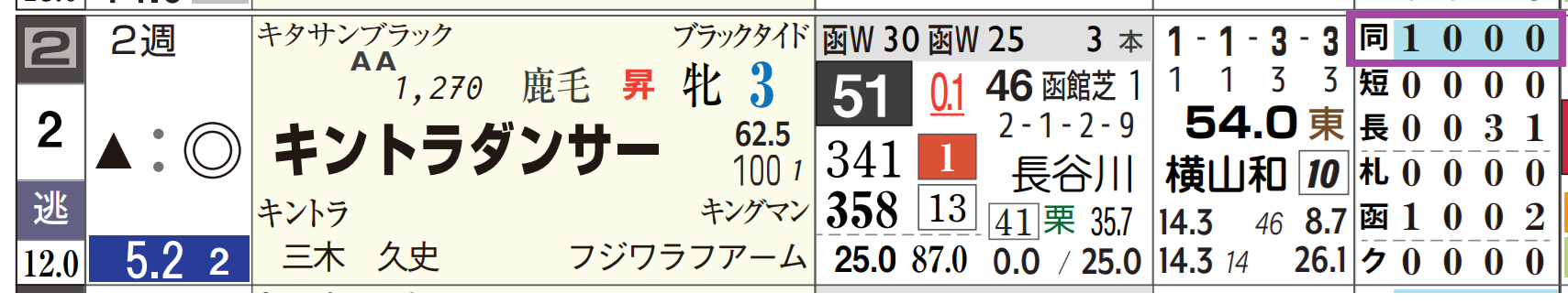 「距離実績」=【1・0・0・0】