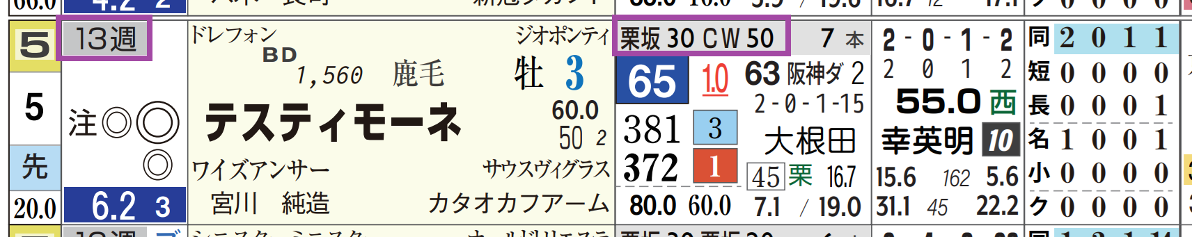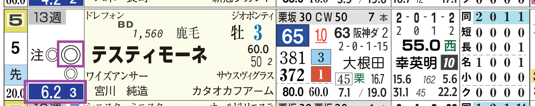 2025年08月10日 【レース予想】中京8R・揖斐川特別(3歳上2勝クラス) 【中京8R・揖斐川特別(3歳上2勝クラス)】⑤テスティモーネは2走前が3勝クラス並み。「レースレベル」=《S》、「ハイブリッド指数」=《63》レパードSへ出走していても上位争いしていた可能性あり。「ハイブリッド指数」1番手CWで猛時計をマーク。「ローテーション」=中13週、1週前の「追切指数」=《50》相手も④タガノバビロン&⑪シャルクハフトの3歳馬の2頭。「基準ハイブリッド指数」超え(背景色グレー)=3頭*画像はリニューアル版の「データシート」(見方はコチラ)⇒「インスタグラム」「ツイッター」にて他情報も更新中 「レース予想」カテゴリの最新記事