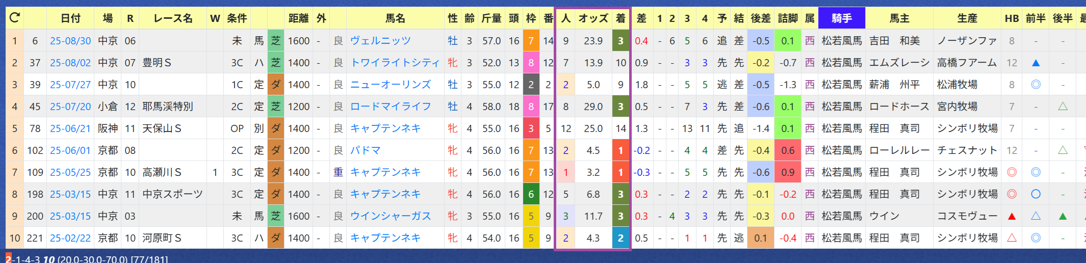 2025年09月03日 【データ分析】杉山晴紀厩舎 【杉山晴紀厩舎】先週は3勝の固め打ち。リーディング1位へ再浮上。年度別成績松若騎手とのコンビは複勝率70%と好相性。松若騎手とのコンビの成績→トップページからログイン→「HBビューワ」→「厩舎成績」※会員登録(無料)で利用可能⇒「インスタグラム」「ツイッター」にて他情報も更新中 「データ分析」カテゴリの最新記事