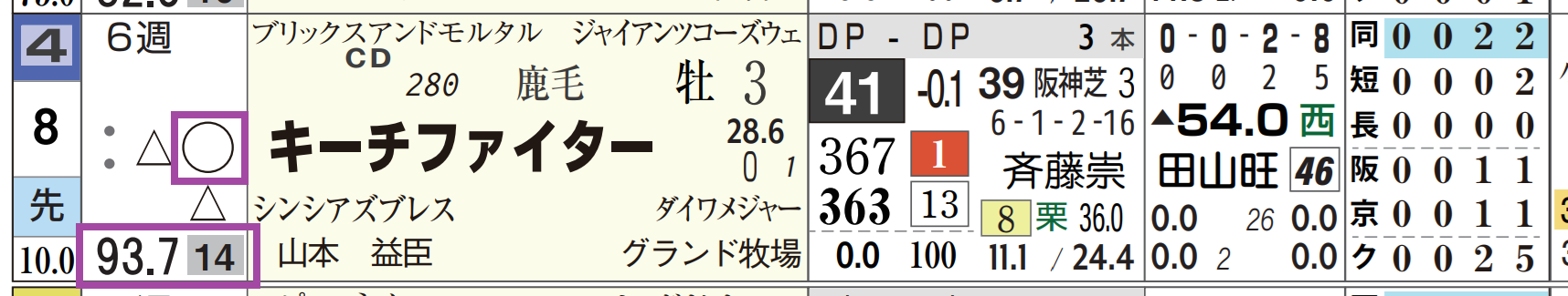 ⑧キーチファイターは3走前に逃げ粘って3着。