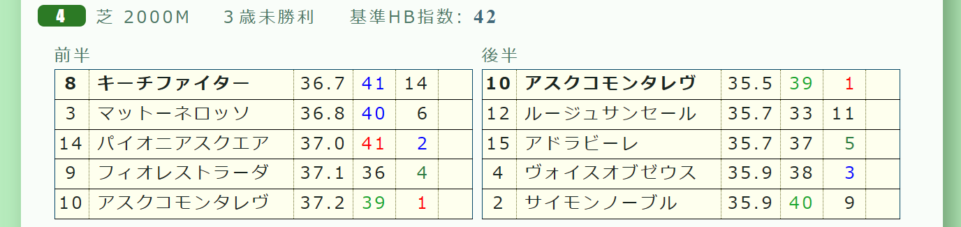 「推定前半3ハロン」1位