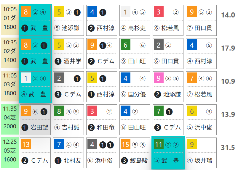 武豊騎手は京都で前半レースから有力馬が多数。