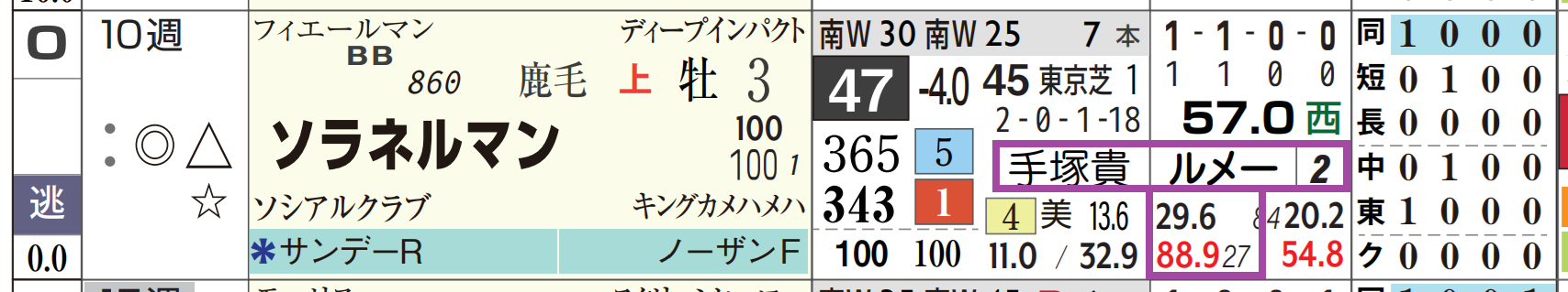 手塚厩舎&ルメール騎手のコンビは複勝率80%超えと好相性。