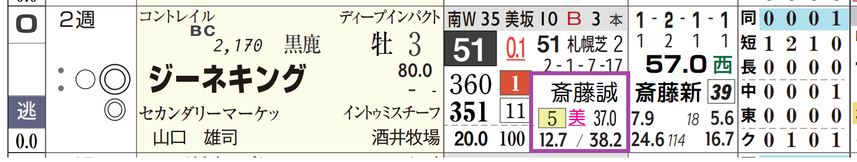 斎藤厩舎は中山の芝の勝ち数が5位と上々。