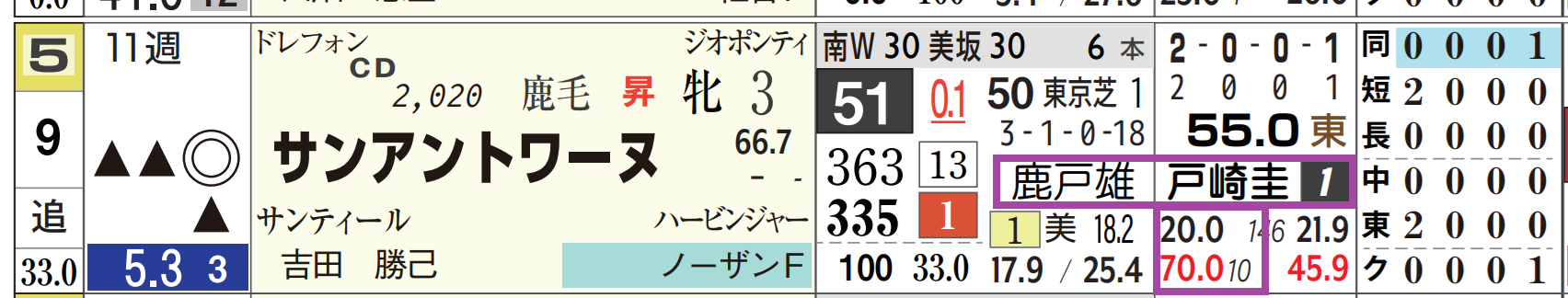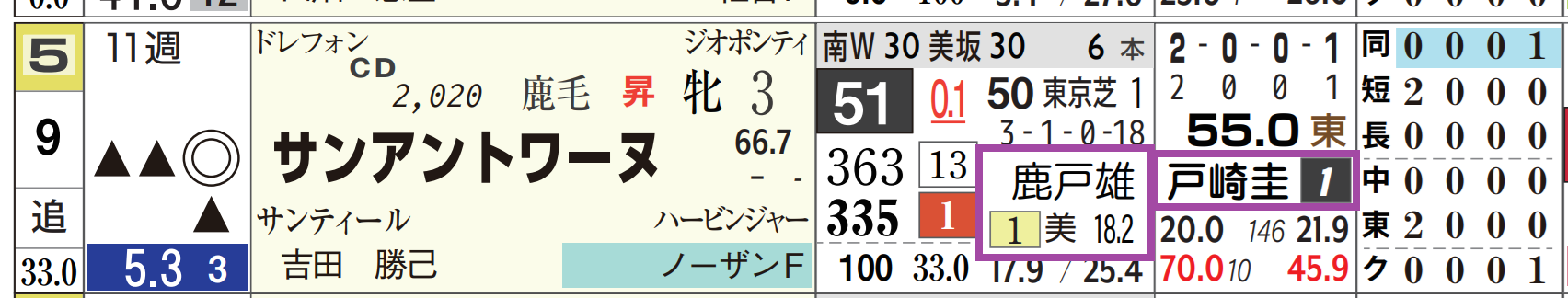 鹿戸厩舎&戸崎騎手は中山の芝の勝ち数が1位と優秀。