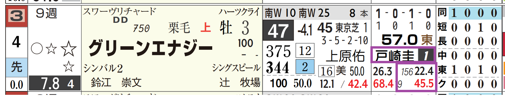 「騎手の該当競馬場の成績」=勝ち数1位、勝率22.4%&複勝率45.5%(156レース)