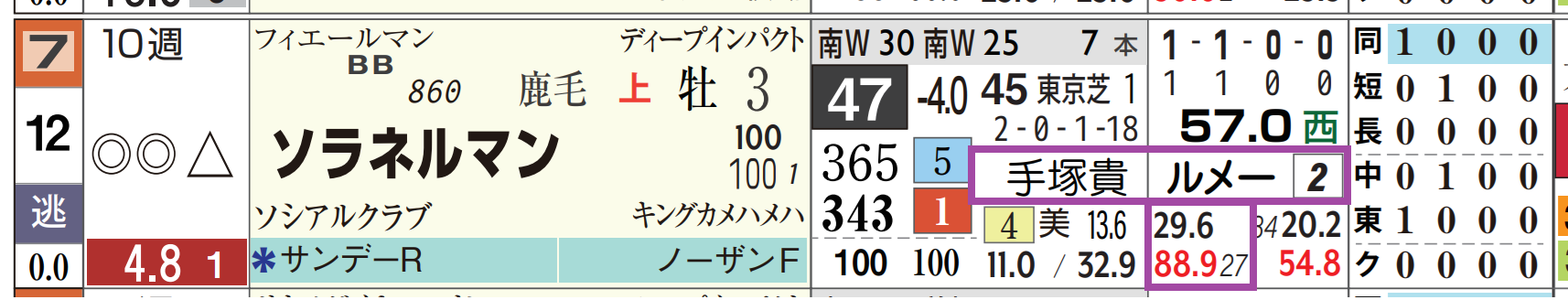 手塚厩舎&ルメール騎手のコンビは複勝率80%超えと好相性。