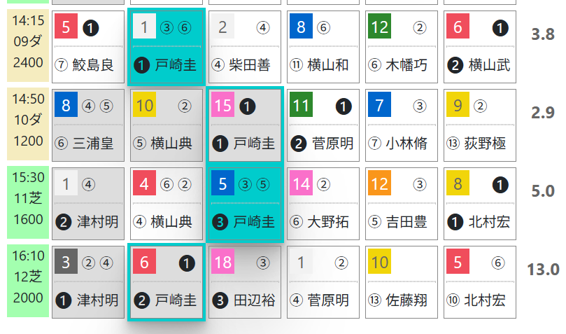 2026年01月12日 【レース予想】中山9R・成田特別(4歳上2勝クラス) 【中山9R・成田特別(4歳上2勝クラス)】①ムジェロは2400mは3戦パーフェクト連対。「騎手の該当競馬場の成績」=勝ち数位、勝率%&複勝率%(レース)戸崎騎手は中山の後半レースで有力馬が多数。戸崎騎手+「ハイブリッド指数」上位*画像はハイブリッド新聞(ライト版)の「HBリストビューワ」【「HBリスト」のサンプル】・全場版 ・競場別版⇒「インスタグラム」「ツイッター」にて他情報も更新中 「レース予想」カテゴリの最新記事