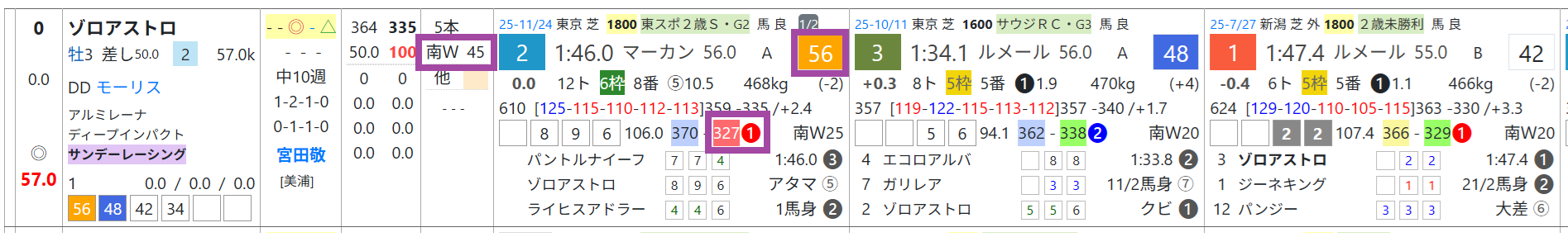 ゾロアストロは東京スポーツ杯2歳Sで上がり最速をマーク、「ハイブリッド指数」=《56》をマークして2着、1週前の「追切指数」=《45》と優秀。