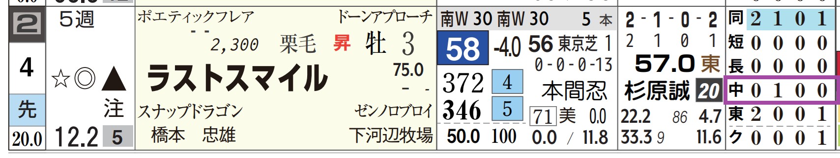 「距離実績」=【2・0・0・0】