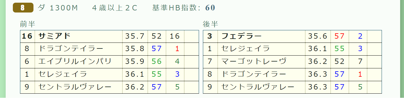 2026年02月10日 【レース予想】東京8R・4歳上2勝クラス 【東京8R・4歳上2勝クラス】③フェデラーはラストは堅実に伸びてくるタイプ。上がり3位以内2勝クラスでは末脚は一枚上。「推定後半3ハロン」1位*画像は「ハイブリッド新聞(PC版)」の【推定3ハロン分析シート】東京へのコース替わりは魅力。「コース実績」=【0・0・0・0】⇒「インスタグラム」「ツイッター」にて他情報も更新中 「レース予想」カテゴリの最新記事