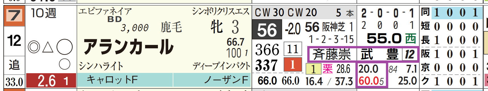 2026年03月01日 【レース予想】阪神11R・チューリップ賞(G2) 【阪神11R・チューリップ賞(G2)】⑫アランカールは野路菊賞を断トツ上がりでⅤ。上がり最速(上がり2位に1.2秒差)斉藤厩舎は阪神の芝の勝ち数が1位と優秀。「厩舎の該当競馬場の成績」=勝ち数1位、勝率16.4%&複勝率37.3%武豊騎手とのコンビは複勝率60%と好相性。「騎手×厩舎成績」=勝率20.0%&複勝率60.0%(5レース)⇒「インスタグラム」「ツイッター」にて他情報も更新中 「レース予想」カテゴリの最新記事