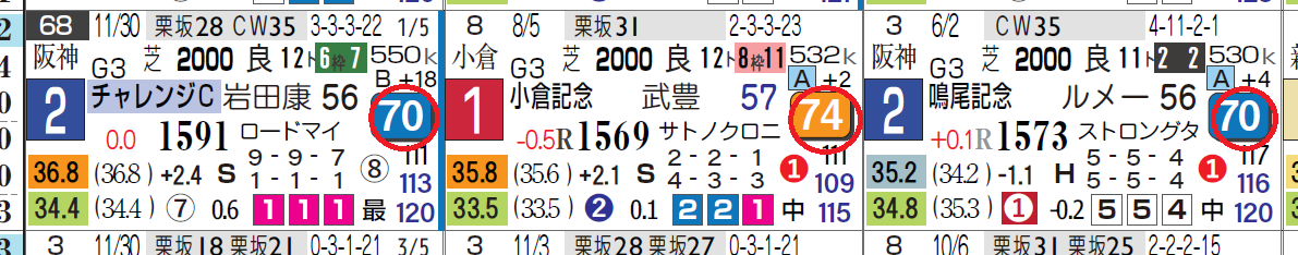測したもの。各レースともに前後半の1位~5位をリストアップ。1枚で各場12R分が閲覧可能です。全場ともに後半9~12Rの「推定3ハロン」は、2009年9月より「サンスポ(関西版)」にて現在も掲載中。