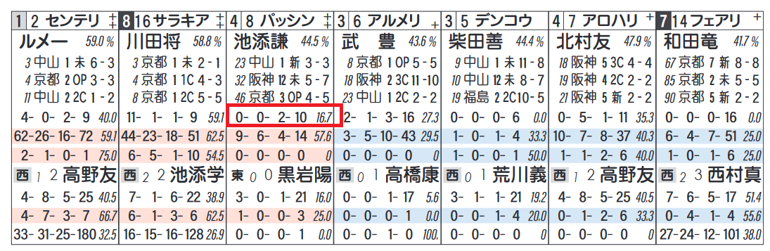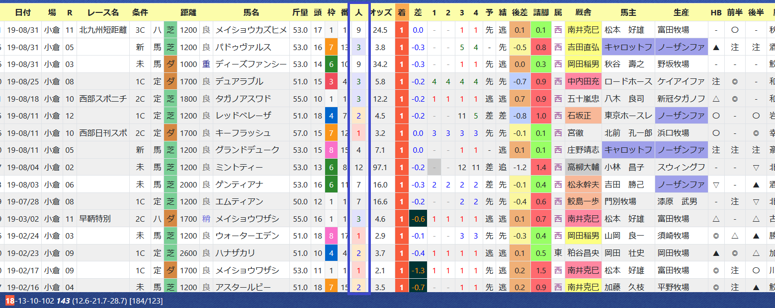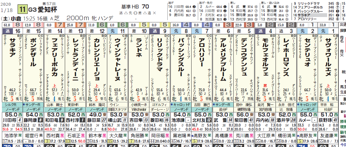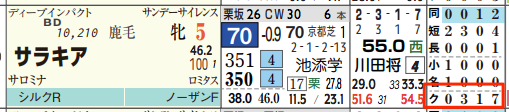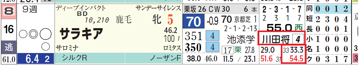 「詰脚」(=残り3Fの先頭からゴールまでどれだけ差を詰めたか)の赤色(=0秒7以上)は優秀。
