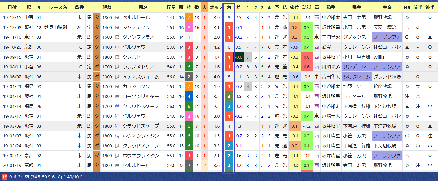 「インスタグラム」「ツイッター」に書いた通り、3枠が最多の3勝、7枠も5連対で最多タイ。外枠有利の舞台だが、このレースはその傾向は少ない。1枠は3着以内が1回と割り引きが必要か。