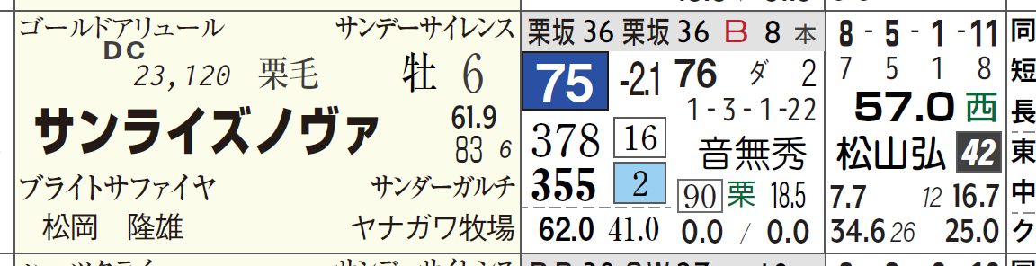 ⑨サンライズノヴァはマイルCSで1着。