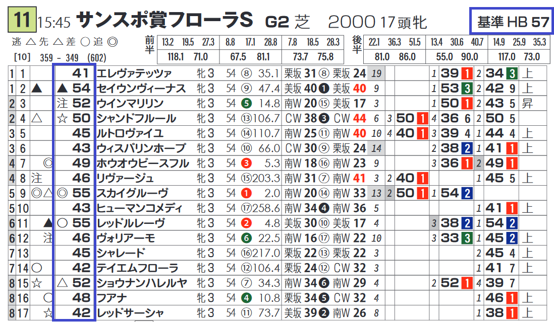 ⑪レッドルレーヴはフローラSで2着。「ハイブリッド指数」=《54》
