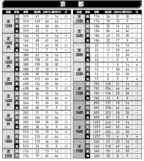 ディープインパクト産駒は京都の芝の1600m以下の成績が良い。