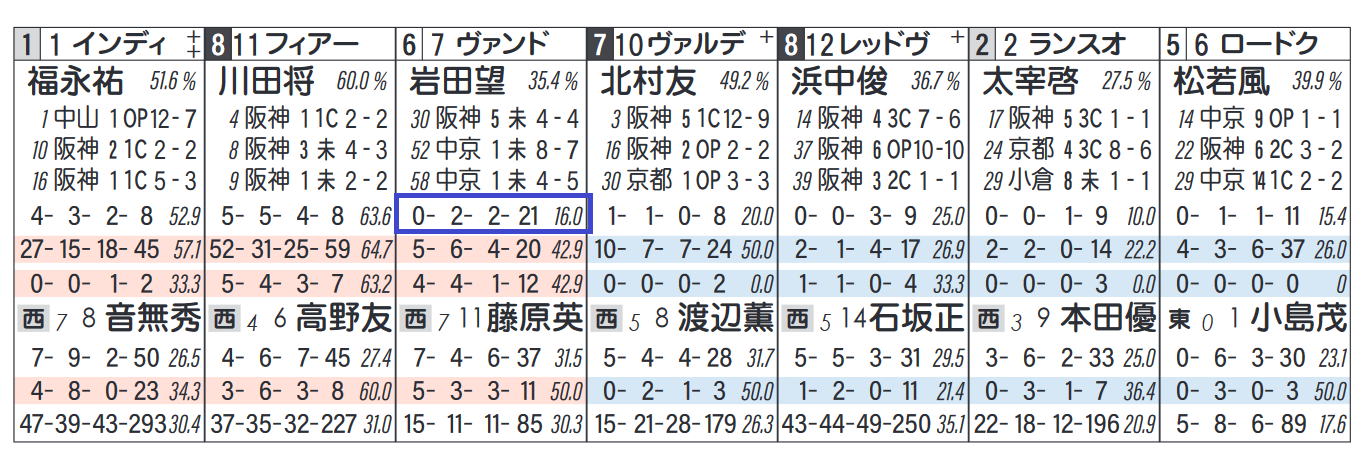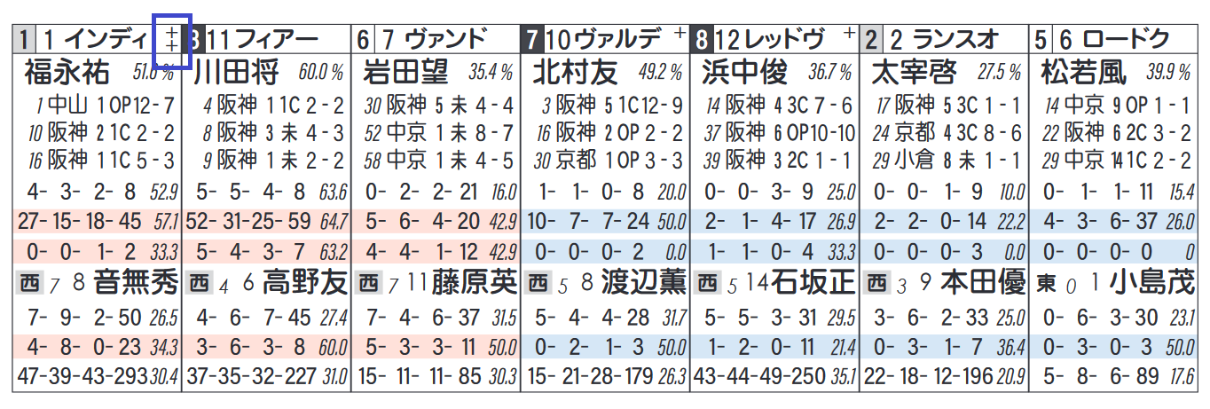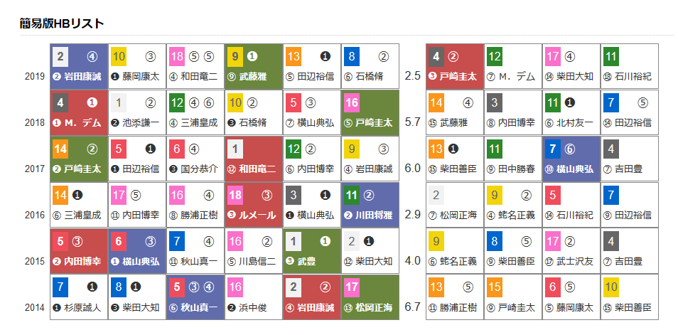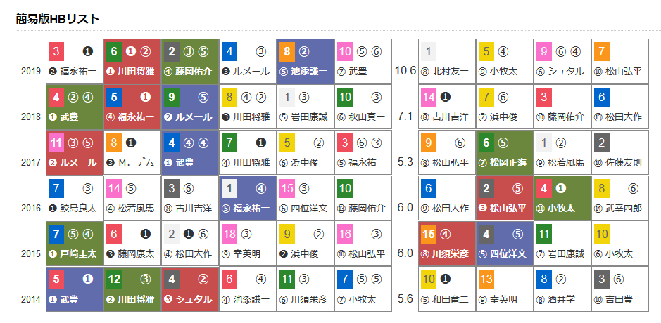「ハイブリッド指数」1番手は4頭が3着以内。近2年は1ブロック(=「ハイブリッド指数」6番手以内)での決着となっている。