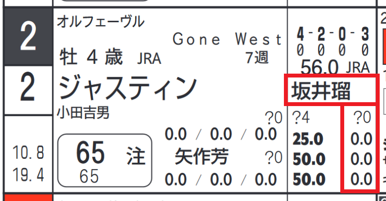 「騎手の該当競馬場の成績」=勝率0.0%&連対率0.0%&複勝率0.0%