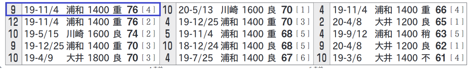 「10走以内の指数上位一覧」