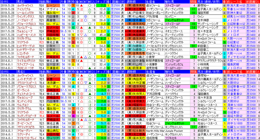 近年は皐月賞で展開、馬場が敗因で敗れて、東京の絶好馬場で巻き返すパターンも多い。