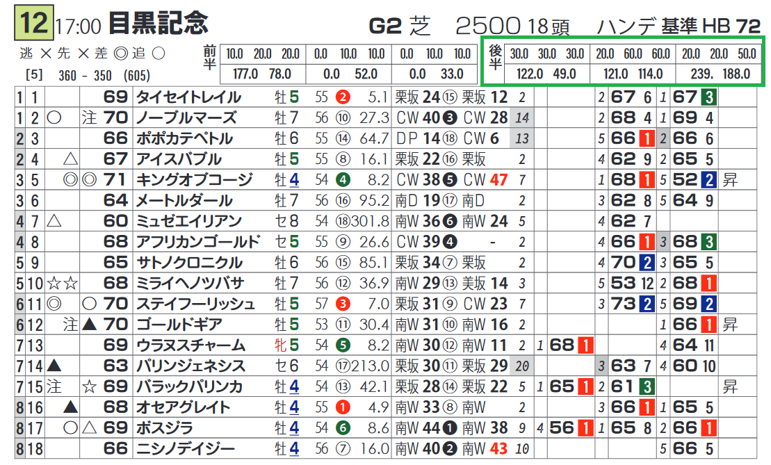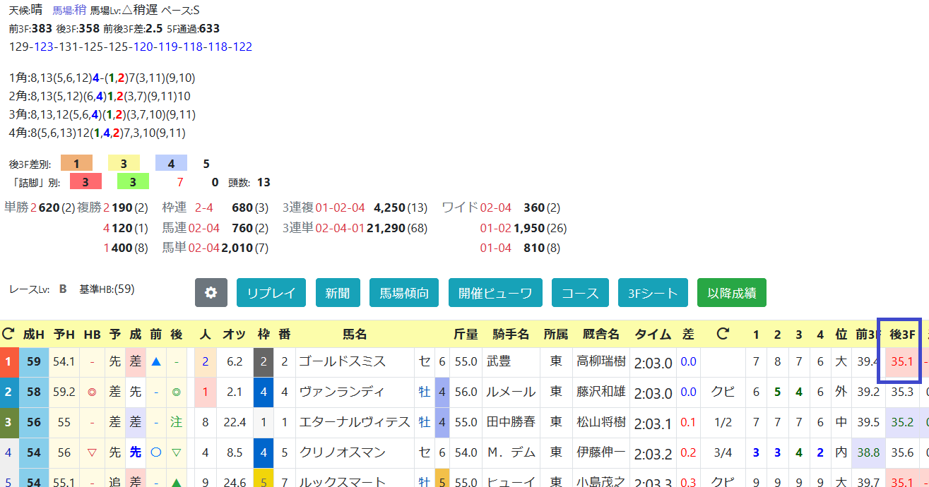 東京2500mは「推定後半3ハロン」上位が好成績。
