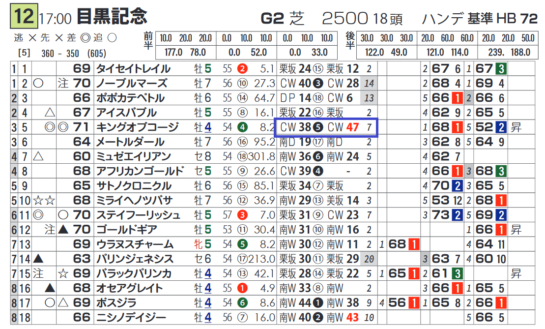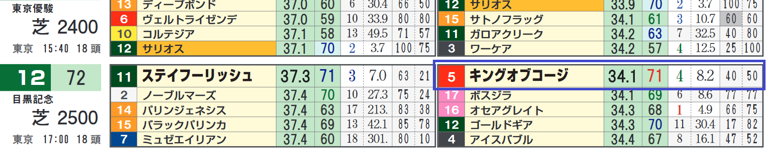 「推定後半3ハロン」1位=⑤キングオブコージ