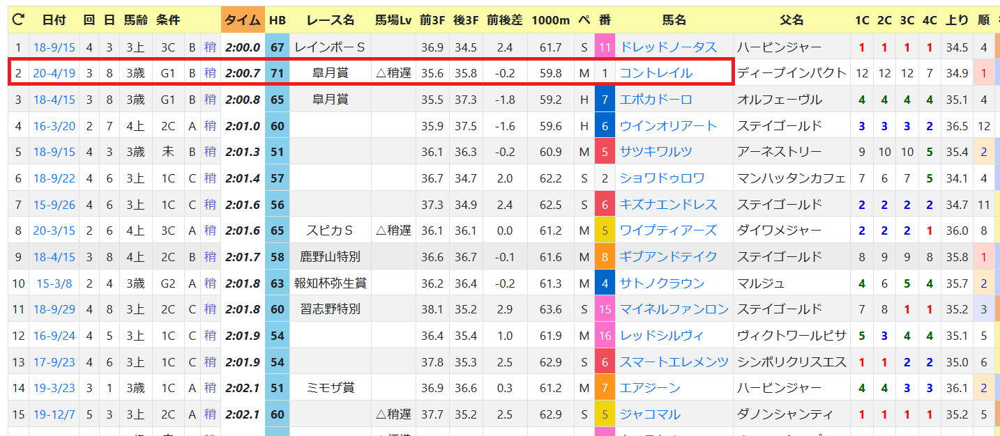 「インスタグラム」「ツイッター」に書いた通り、勝ち時計2分0秒7は稍重馬場で2位(2015年以降)。