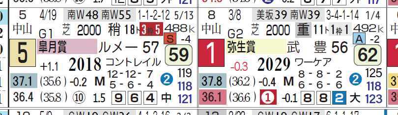 今年は皐月賞1着⑤コントレイル、2着⑫サリオスを巡っての争い。
