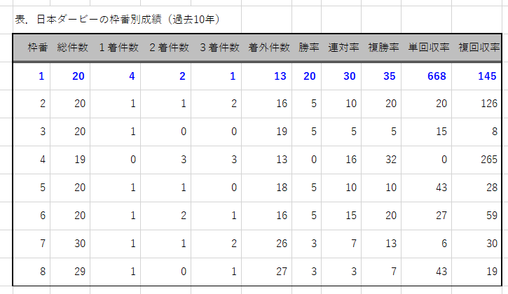 「インスタグラム」「ツイッター」に書いた通り、過去10年で1枠が4勝&2着2回、勝率20%&連対率30%と圧倒的。内枠有利の傾向が強い。