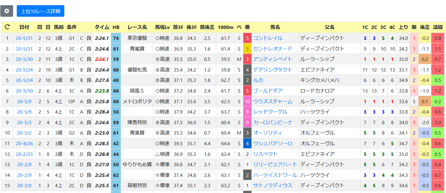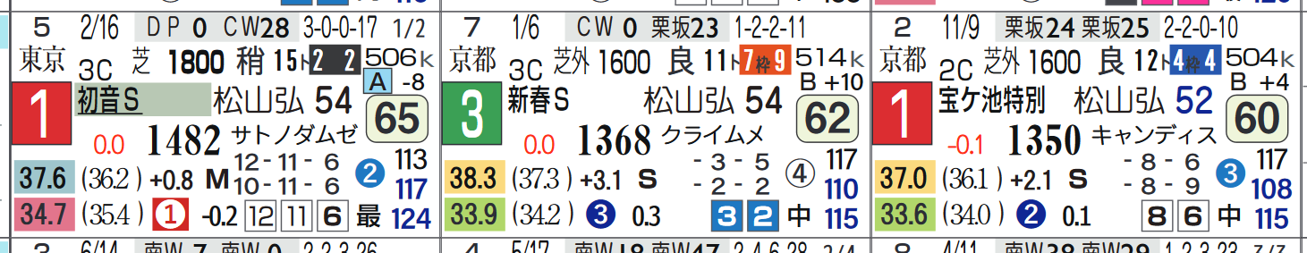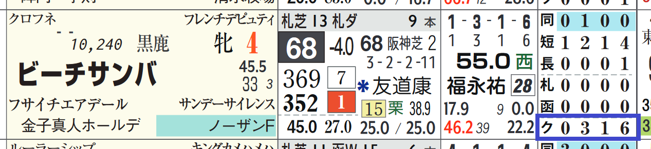 測したもの。各レースともに前後半の1位~5位をリストアップ。1枚で各場12R分が閲覧可能です。全場ともに後半9~12Rの「推定3ハロン」は、2009年9月より「サンスポ(関西版)」にて現在も掲載中。