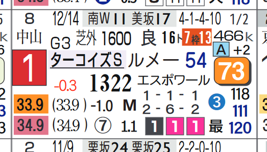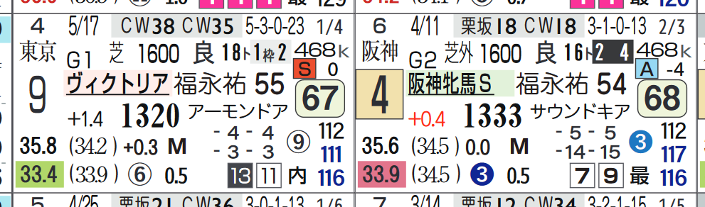 近4年の勝ち馬は「推定前半3ハロン」2位以内 or 「推定後半3ハロン」2位以内。前後半5傑入りの好走が多い。