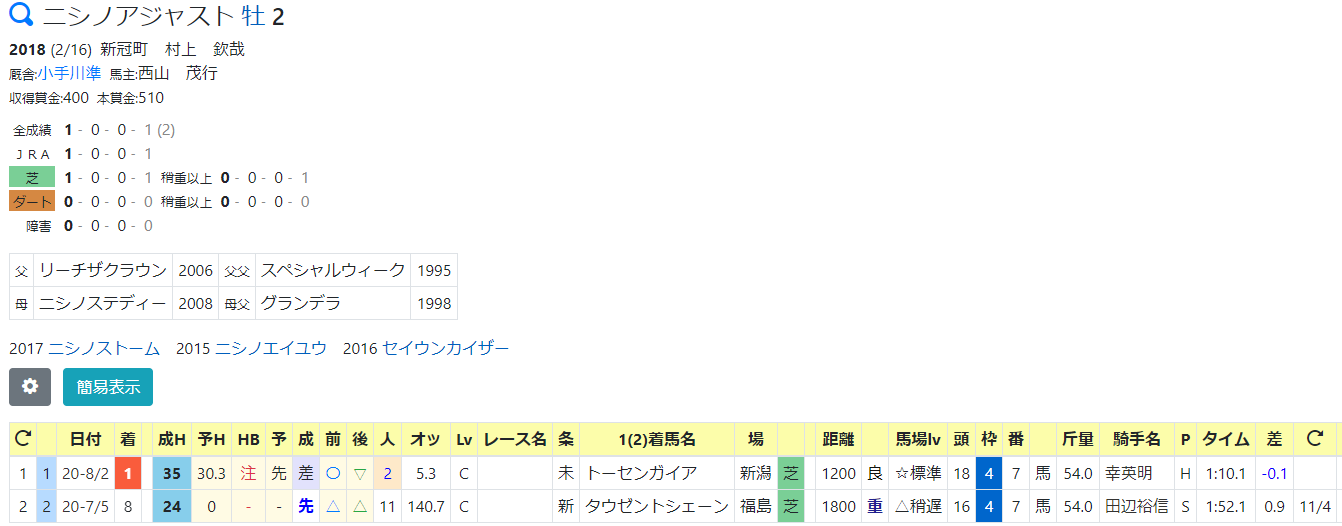 35:ニシノアジャスト(8/2未勝利戦1着)