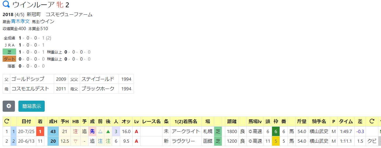 50:ヨッシーフェイス(7/18未勝利戦1着)