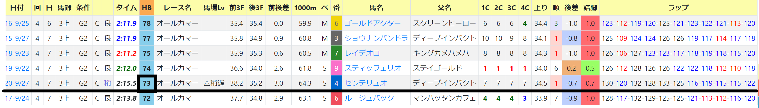 過去勝ち馬の前走HB指数+制覇までの近4走を見ると
