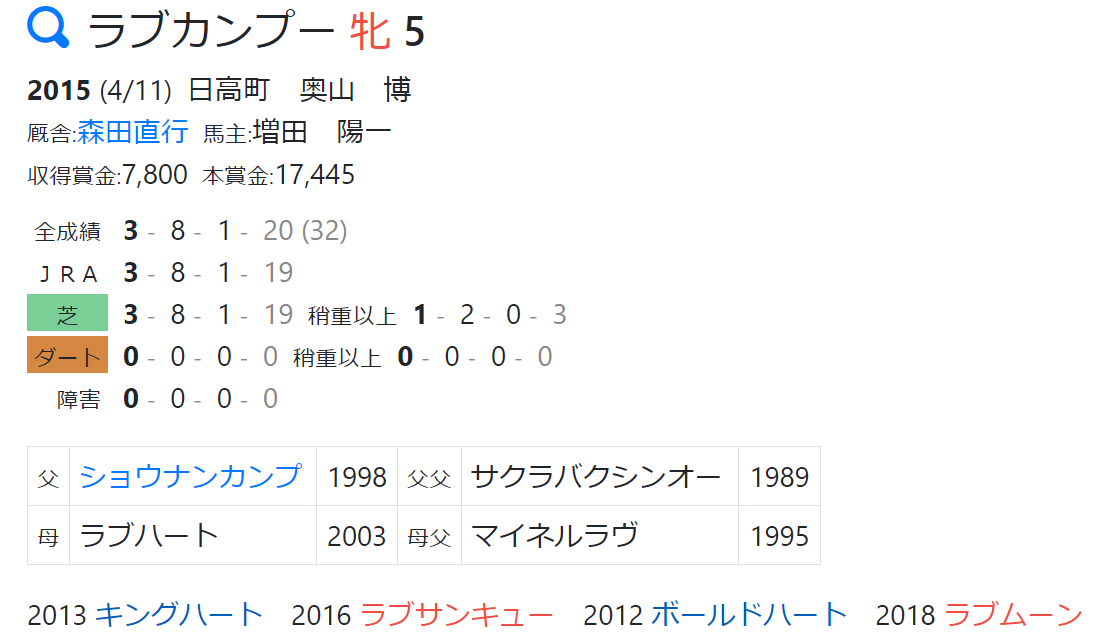 平均HB指数:58 15戦 ※芝成績のみ