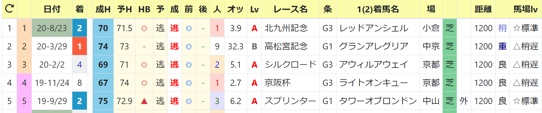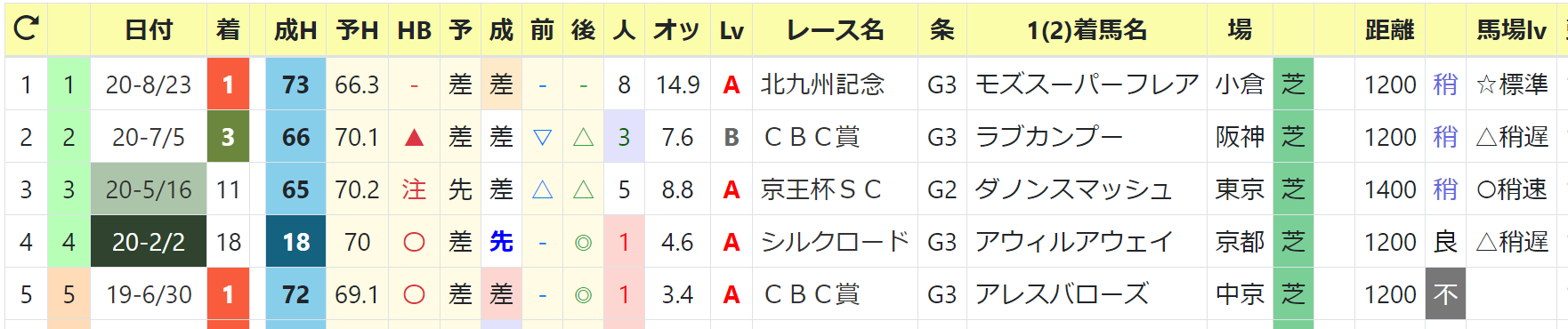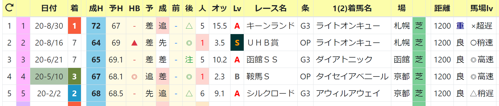 最高HB指数:71 2020/シルクロードS1着
