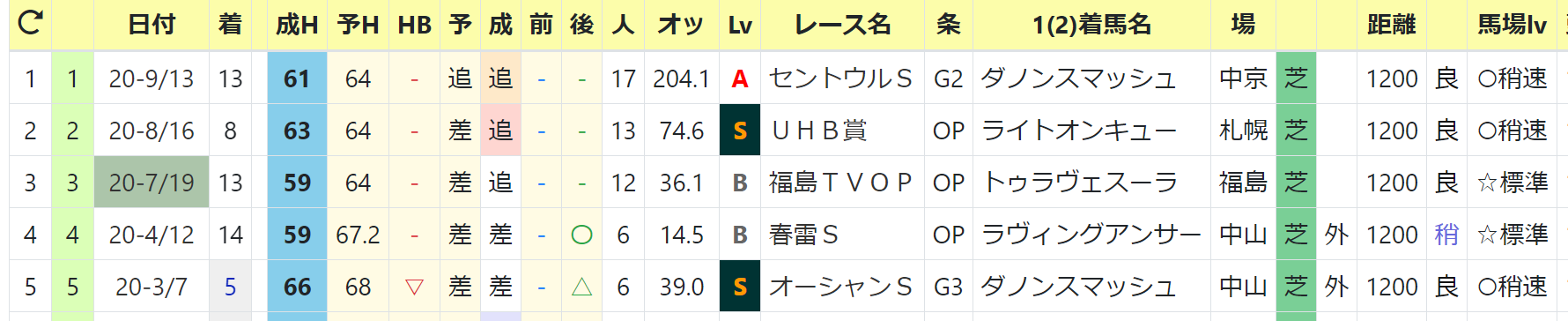 最高HB指数:65 2020/セントウルS5着