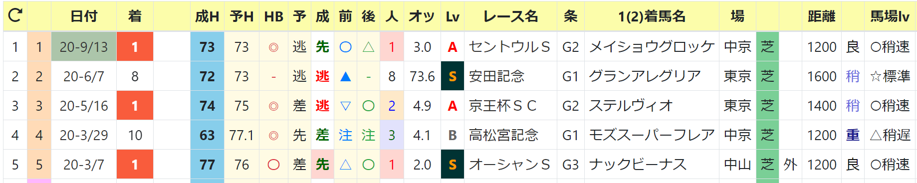 最高HB指数:77 2020/オーシャンS1着