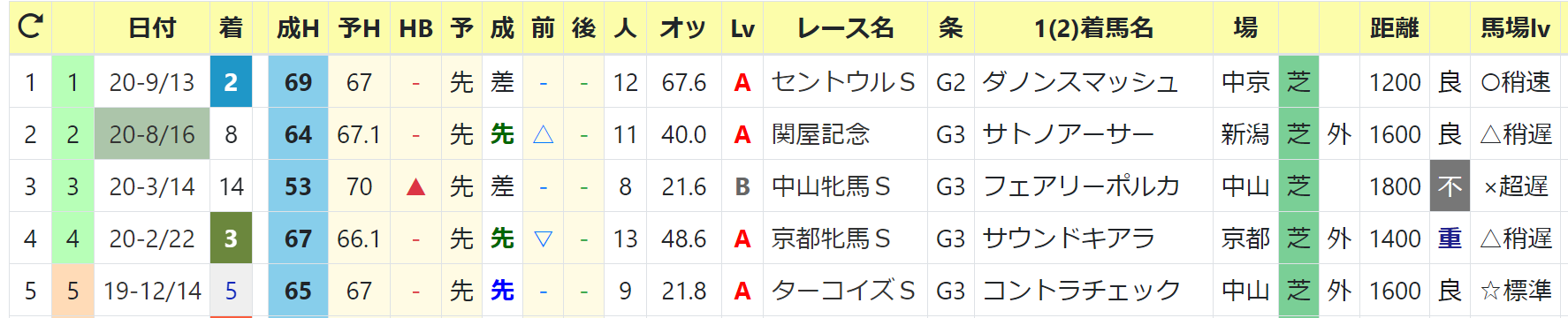 最高HB指数:69 2020/セントウルS2着