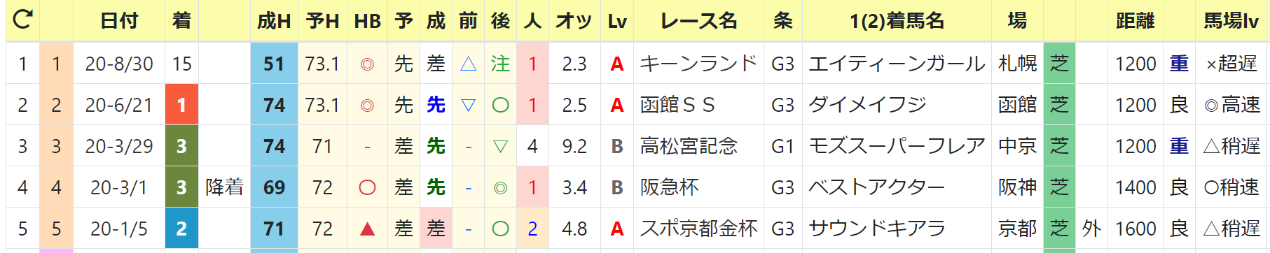 最高HB指数:74(2回 2020/函館SS1着,高松宮記念3着
