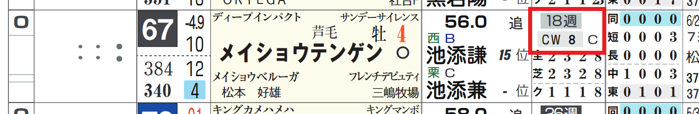 「ローテーション」=中18週、「追切指数」=《8》、「追切評価」=《C》