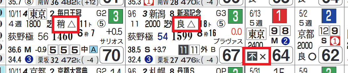 測したもの。各レースともに前後半の1位~5位をリストアップ。1枚で各場12R分が閲覧可能です。全場ともに後半9~12Rの「推定3ハロン」は、2009年9月より「サンスポ(関西版)」にて現在も掲載中。