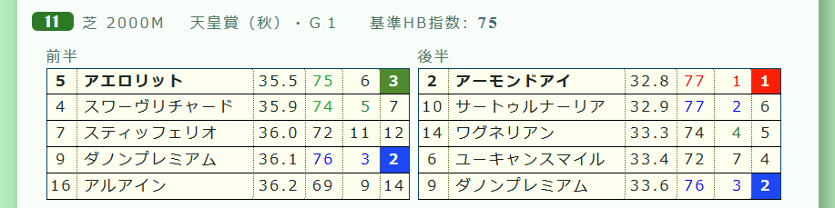 近4年で「推定後半3ハロン」1位は3勝&2着1回とパーフェクト連対。近6年の勝ち馬の5頭までが「推定後半3ハロン」4位以内に該当。