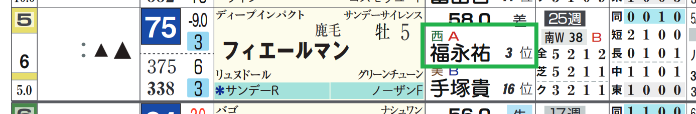 「リーディング順位」=3位、「騎手評価」=《A》